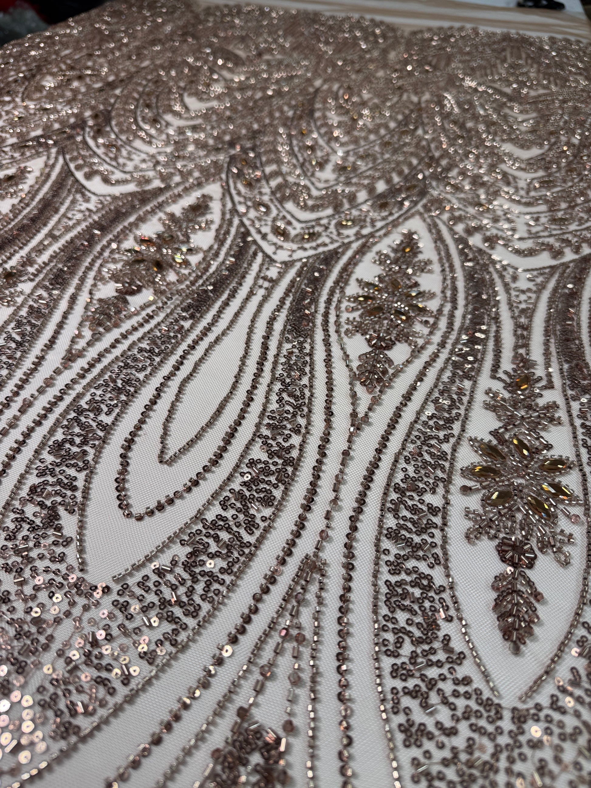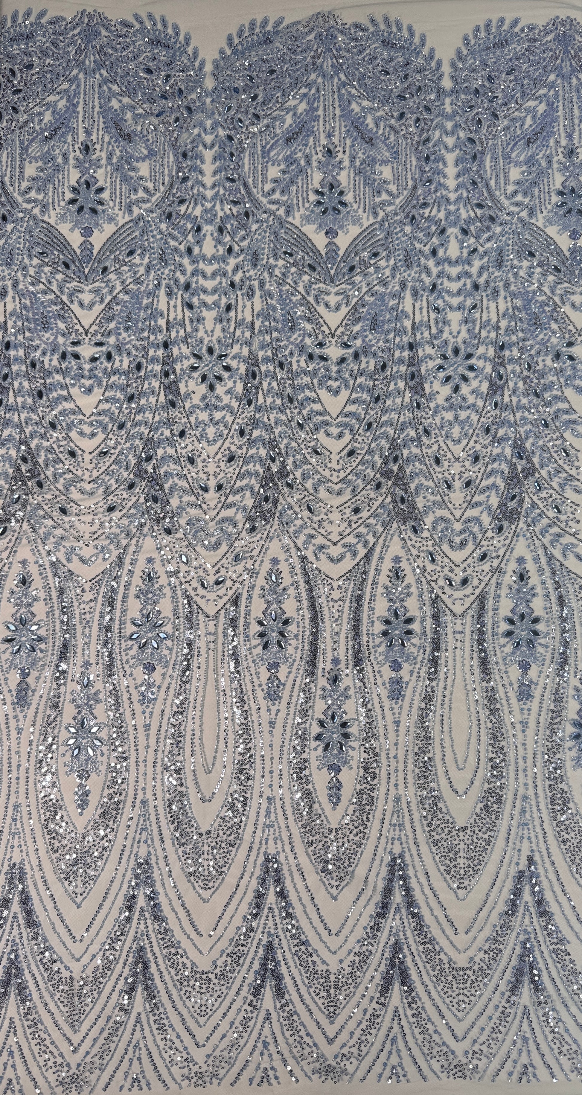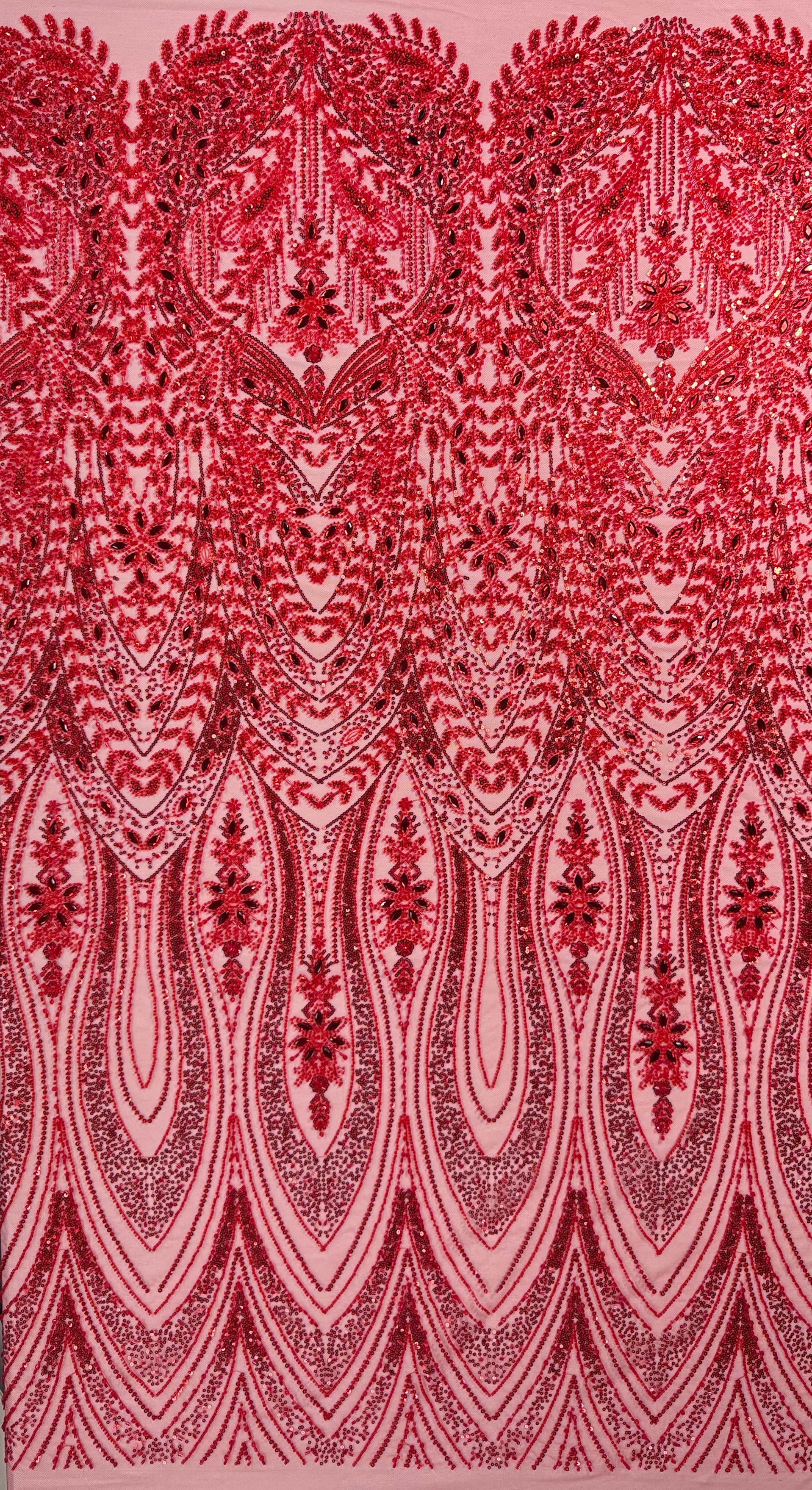Luxurious cascade rhinestone and bead embellishment on a sturdy mesh backing , creating an eye-catching textile ideal for evening gowns, formal occasions, and prom wear. The intricate beadwork catches light beautifully, adding dimension and elegance to any design. Perfect for designers seeking statement-making embellished fabrics with reliable structure and lasting quality.
