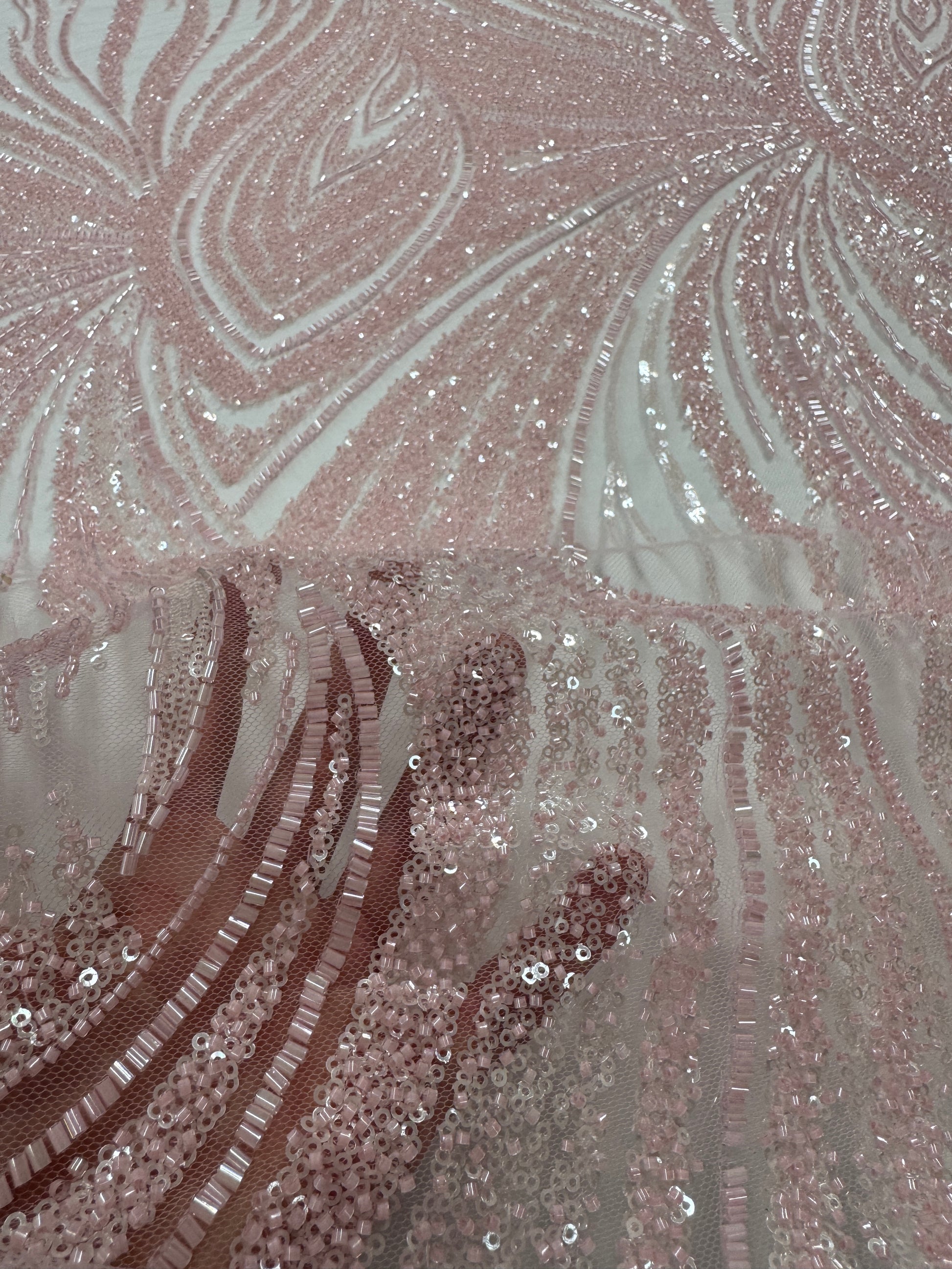 Sheer mesh foundation adorned with intricate beaded lace detailing and flowing organic motifsβthe sophisticated choice for show-stopping evening gowns and prom designs. This premium fabric delivers the transparency and structure your most elegant creations demand.