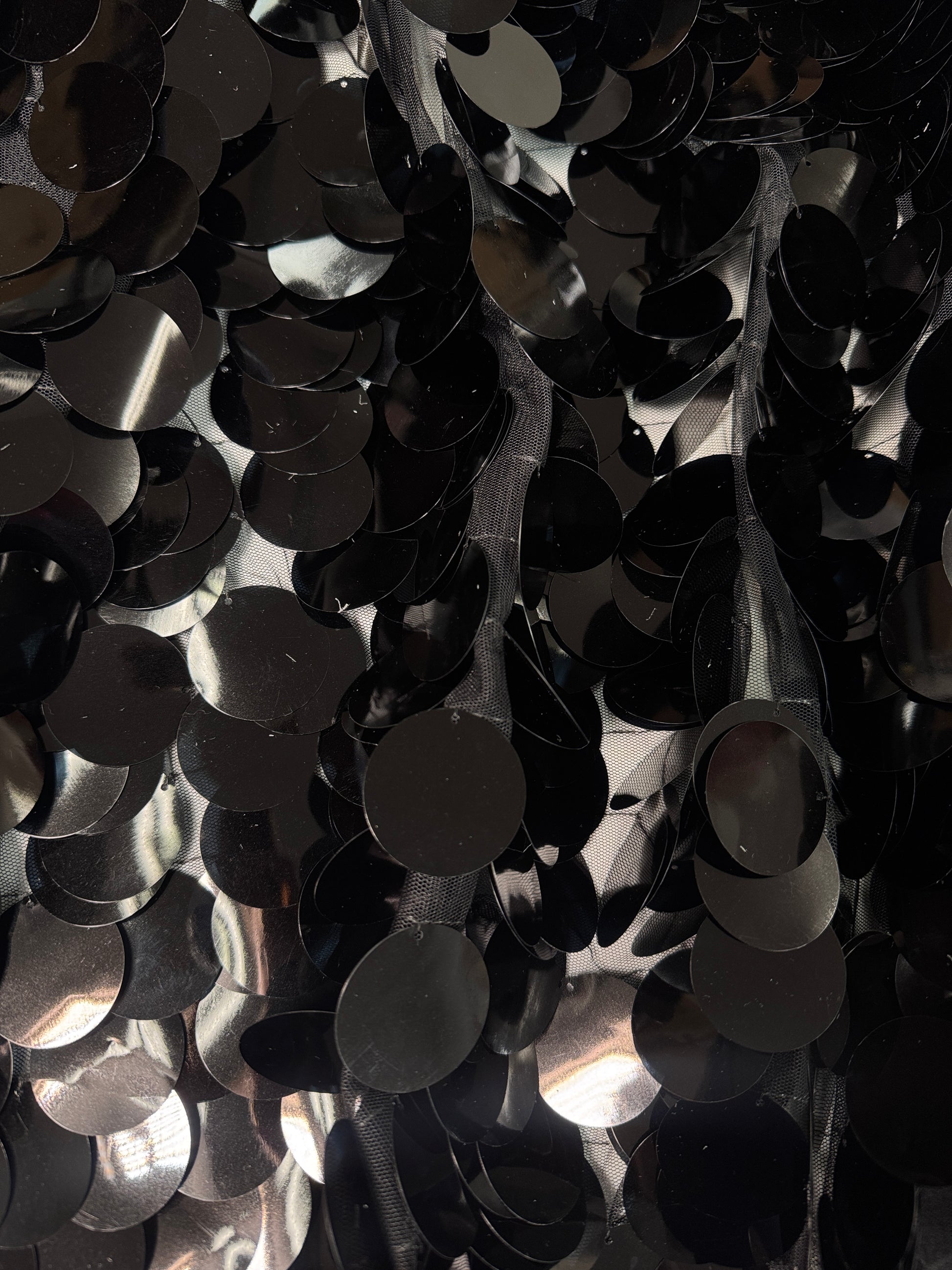 Capture light and movement with this dynamic sequin stretch fabric, featuring oversized 1.5-inch sequins that dance with every wear. The fluid drape and responsive stretch create an eye-catching shimmer perfect for statement pieces that demand attention on any runway or dance floor.