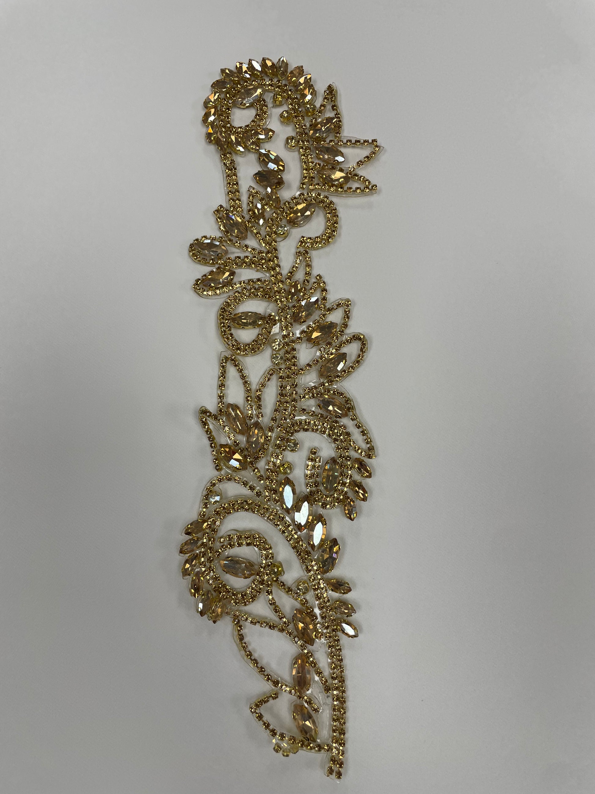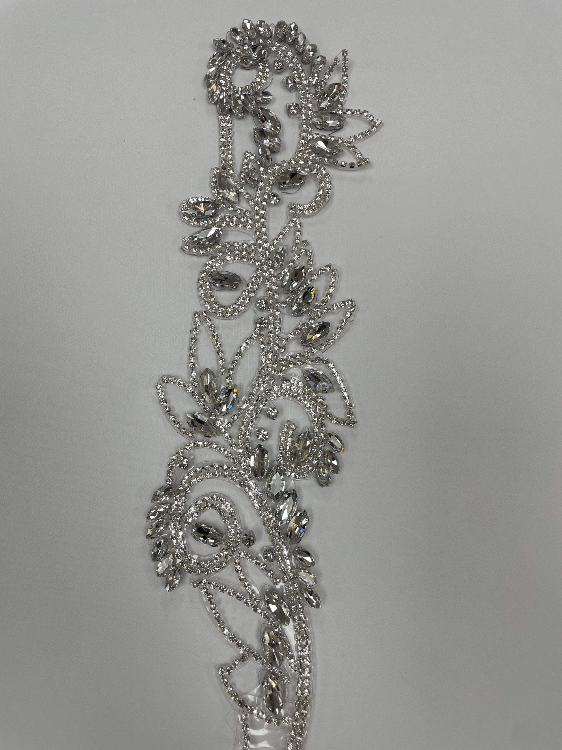 Heat-activated applique that transforms any garment with effortless elegance. This 11" x 3" design features a hotfix backingβsimply press with an iron for instant, secure adhesion. Perfect for designers seeking quick embellishment without stitching or complicated techniques. Professional results in seconds.