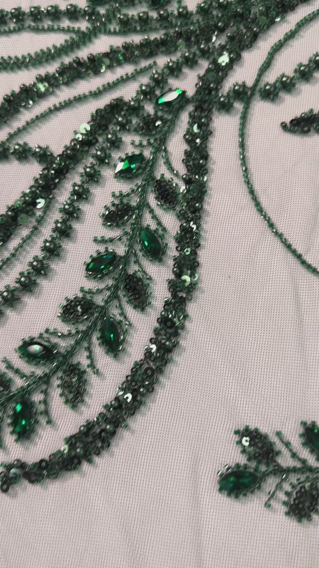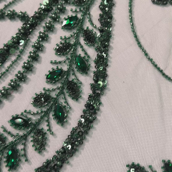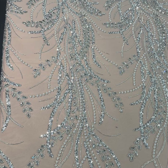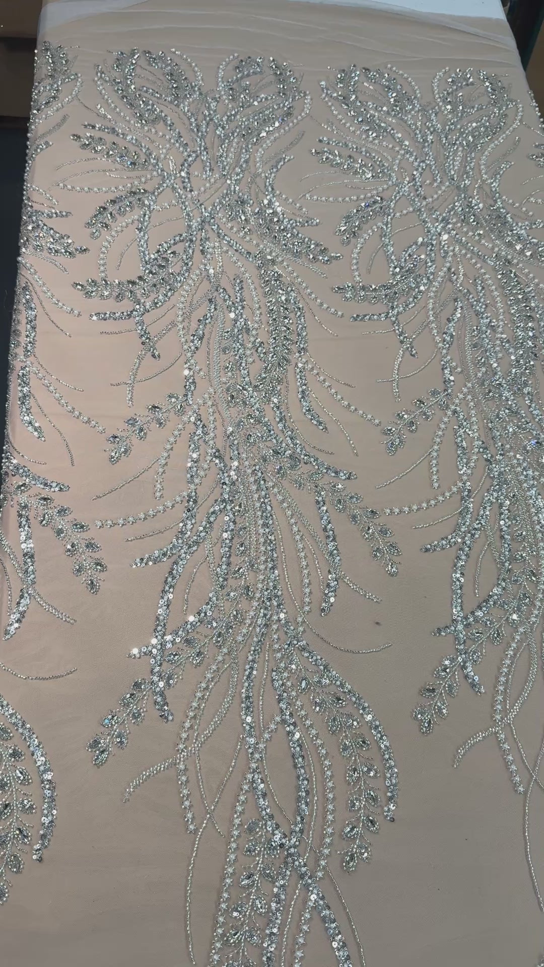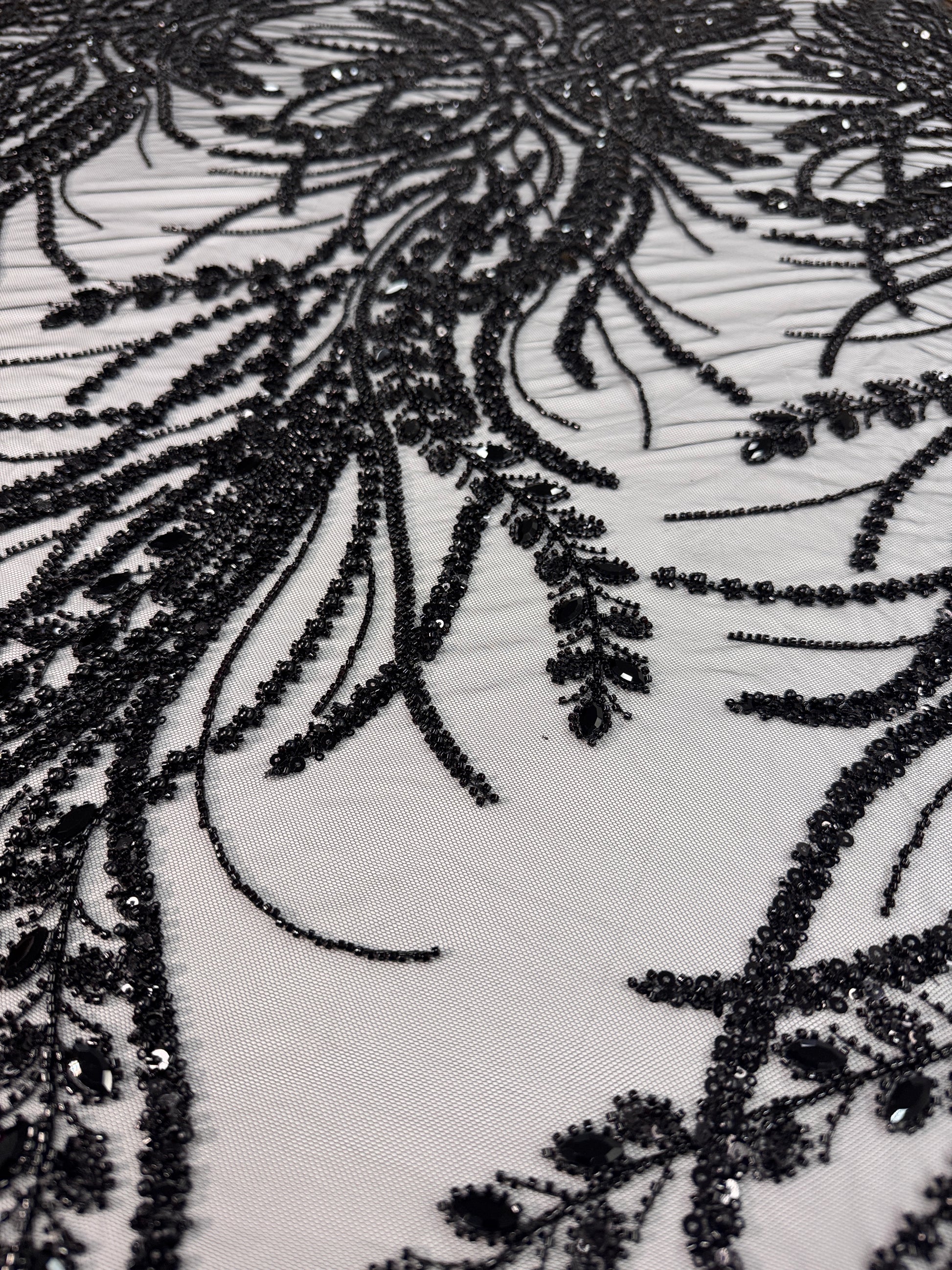 Elevate your designs with this exquisite rhinestone-embellished lace with crystal rhinestones that catch light beautifully. The sheer mesh foundation offers exceptional versatility for layering, allowing you to create dimensional silhouettes that transition seamlessly from bridal gowns to evening wear and prom attire. The sturdy construction ensures your creations maintain their elegance through wear and movement, making this the ideal choice for designers seeking luxury fabrics.