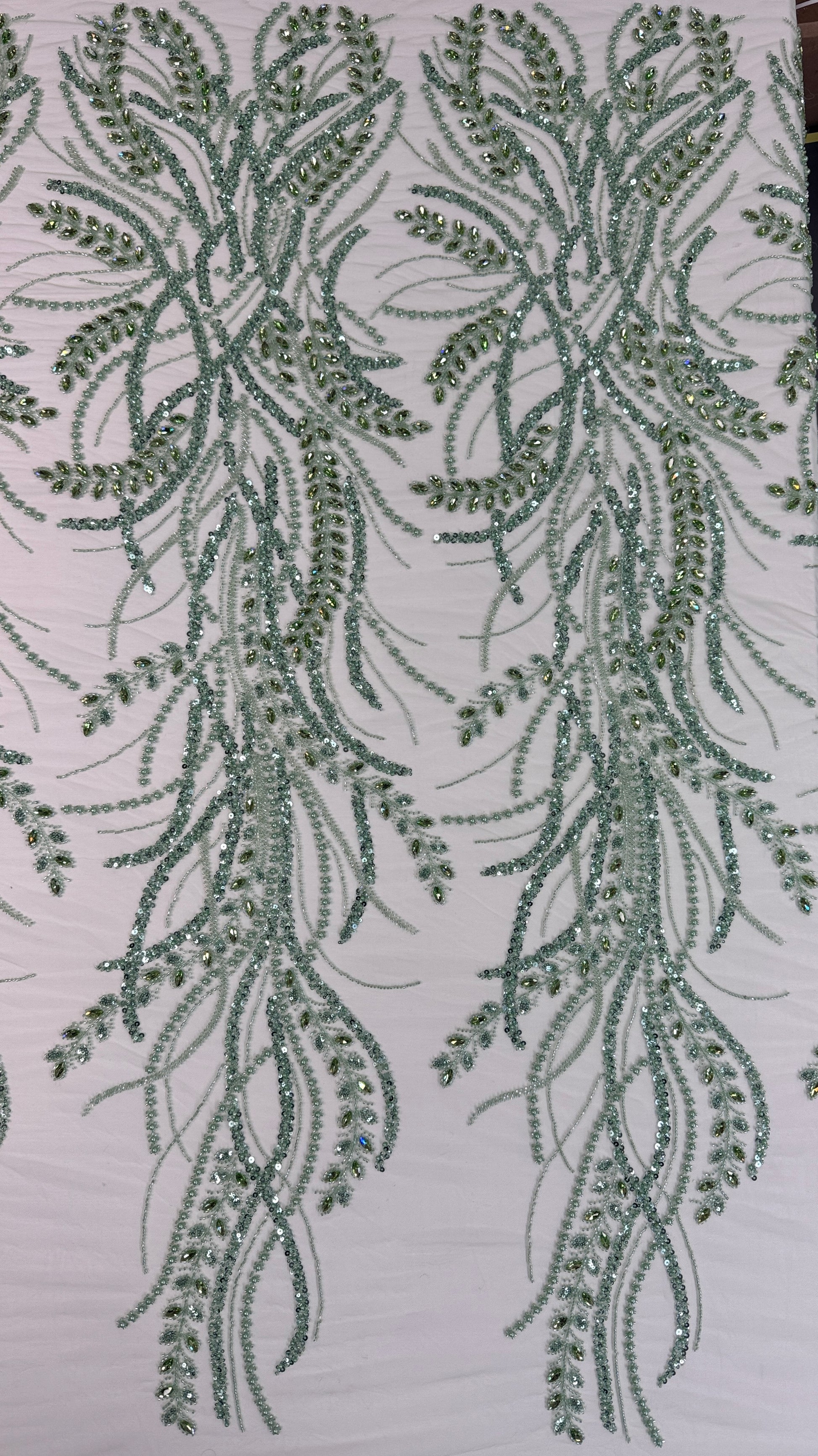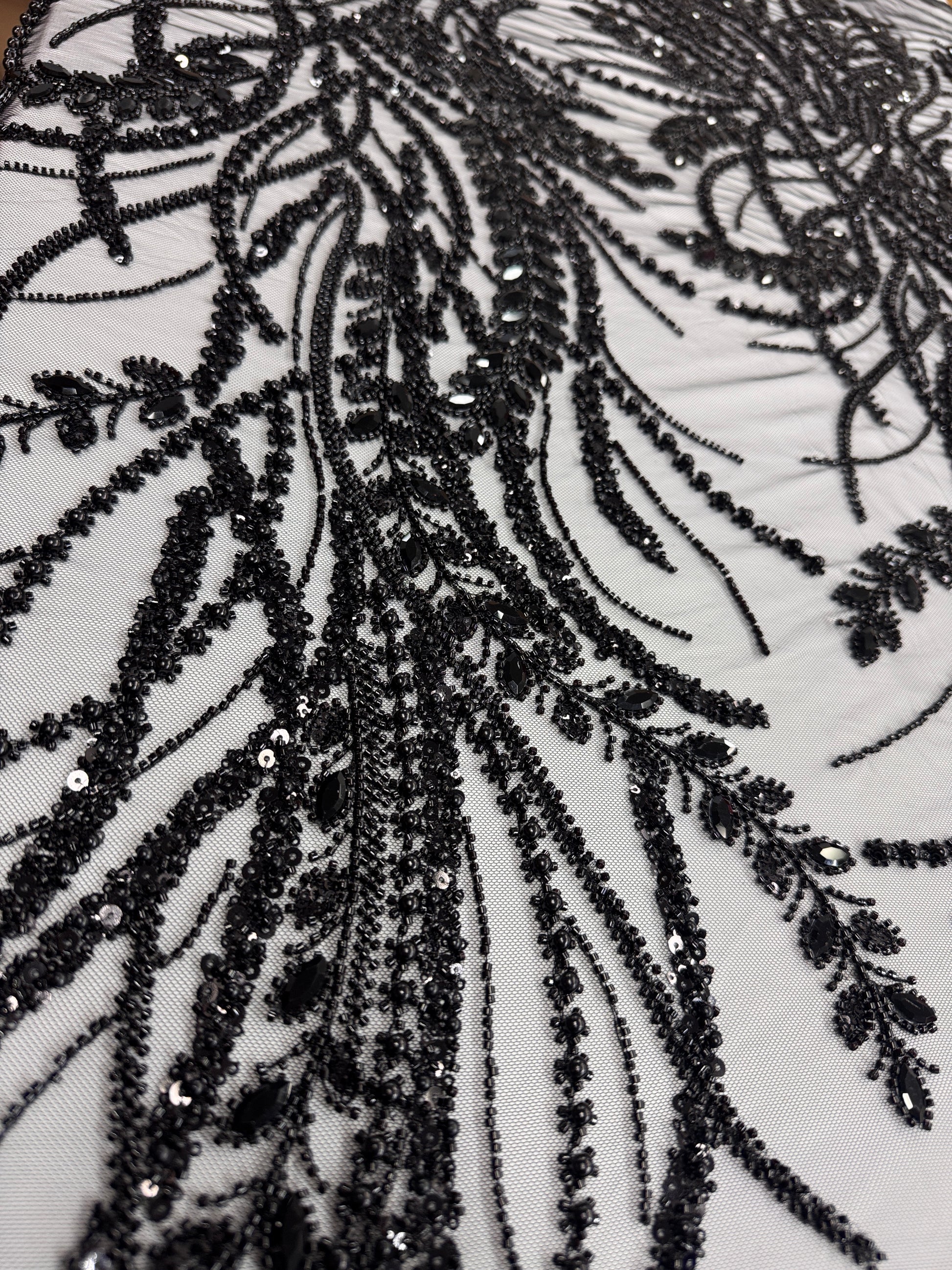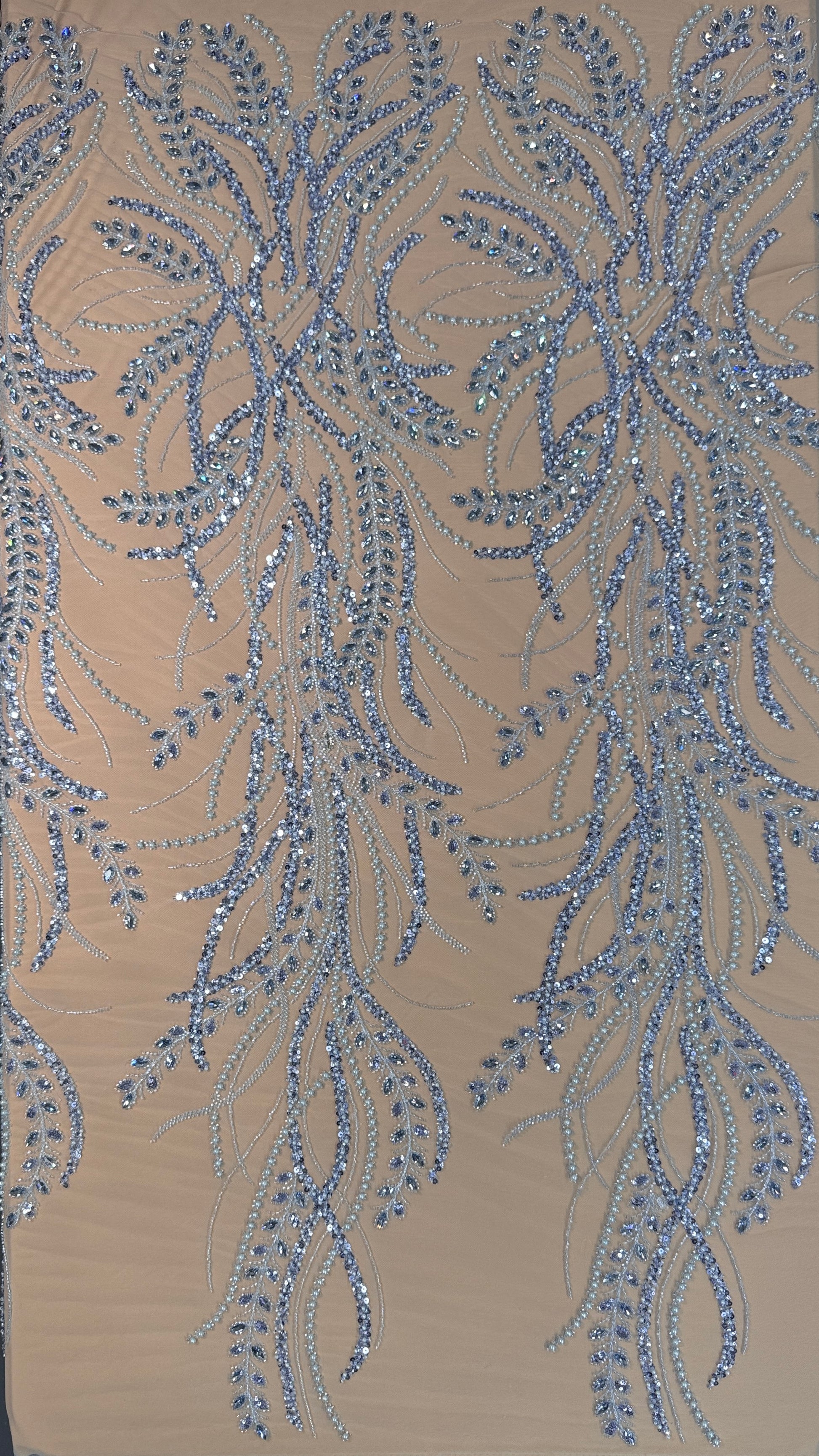 Elevate your designs with this exquisite rhinestone-embellished lace with crystal rhinestones that catch light beautifully. The sheer mesh foundation offers exceptional versatility for layering, allowing you to create dimensional silhouettes that transition seamlessly from bridal gowns to evening wear and prom attire. The sturdy construction ensures your creations maintain their elegance through wear and movement, making this the ideal choice for designers seeking luxury fabrics.