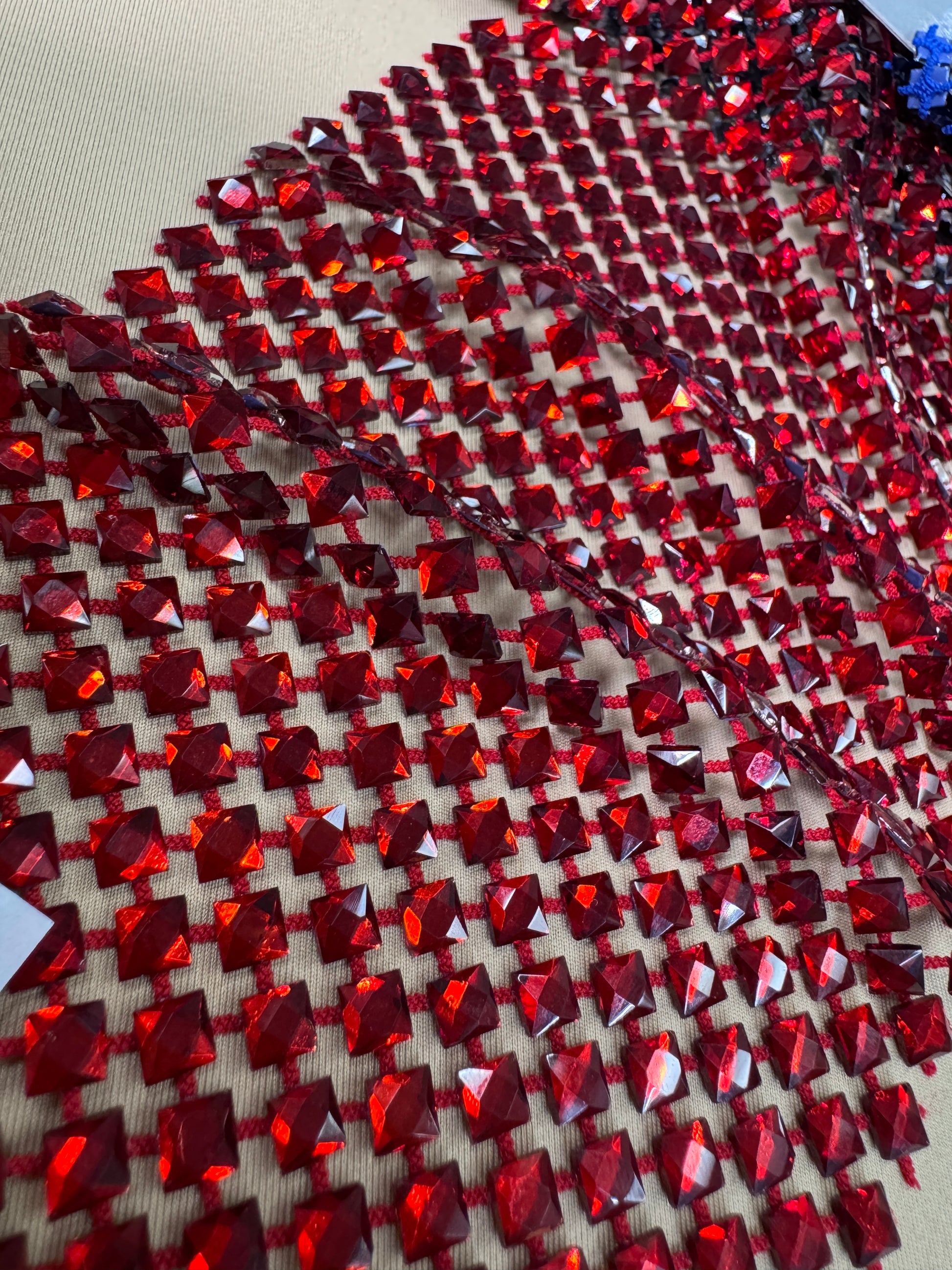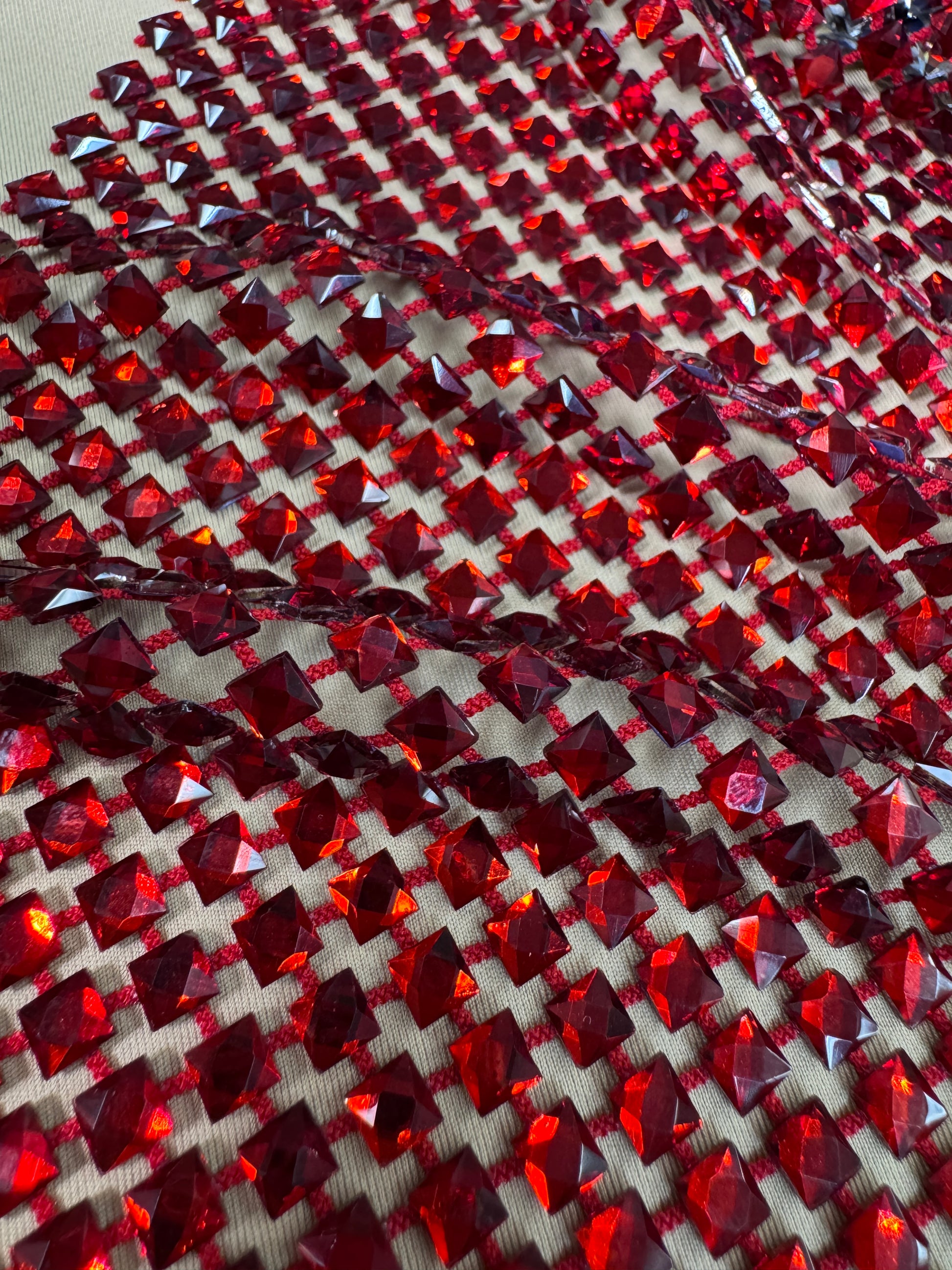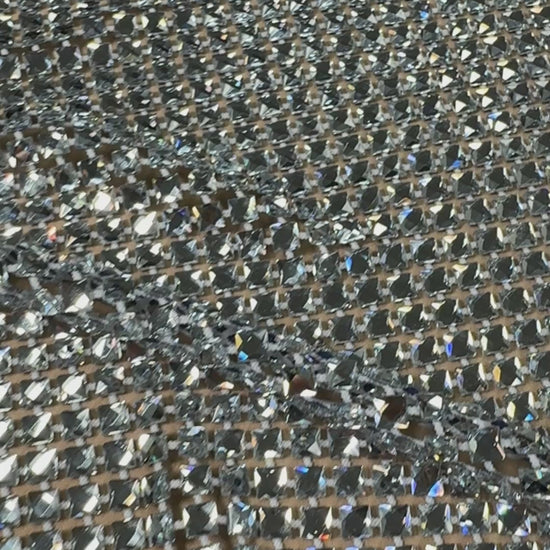 Transform your creations with this radiant rhinestone mesh, engineered for designers who demand impact. Precision-cut square stones deliver captivating sparkle across a supple stretch foundation that moves with your fabric, ideal for flowing silhouettes and sculptural draping. At 0.5cm x 0.5cm per stone, this textile combines luxury detail with versatile construction for collections that command attention.