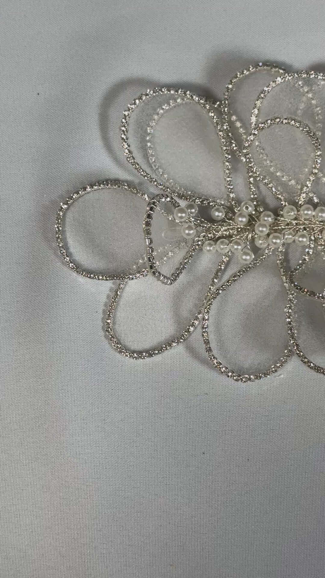 Add a stunning touch of elegance to your designs with our Sheer 3D Flower Applique adorned with pearls and rhinestones. This long flower applique features delicate sheer fabric embellished with shimmering pearls and sparkling rhinestones, creating a luxurious and eye-catching effect. Its flexible wire base allows you to easily mold and shape the applique, giving you the freedom to add beautiful three-dimensional dimension and texture to any garment or accessory. Perfect for bridal wear, evening gowns, or special occasion outfits, this applique transforms your creations into unique works of art that truly stand out.