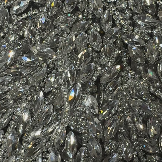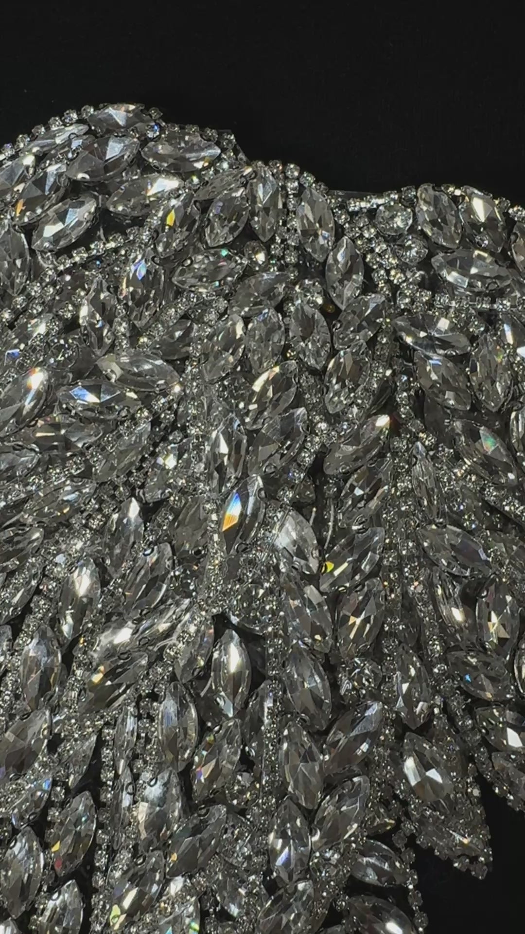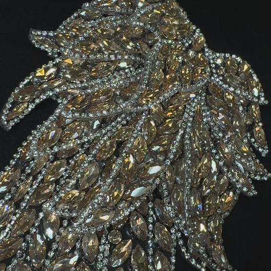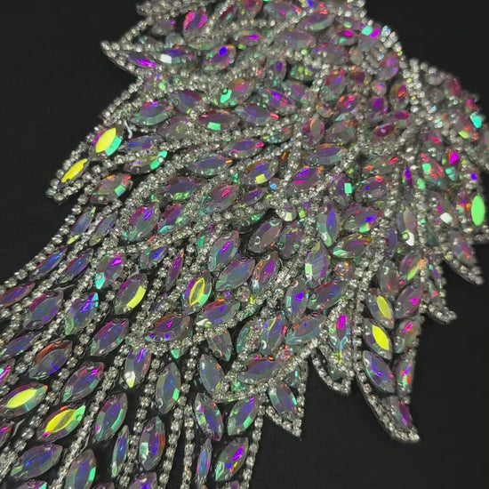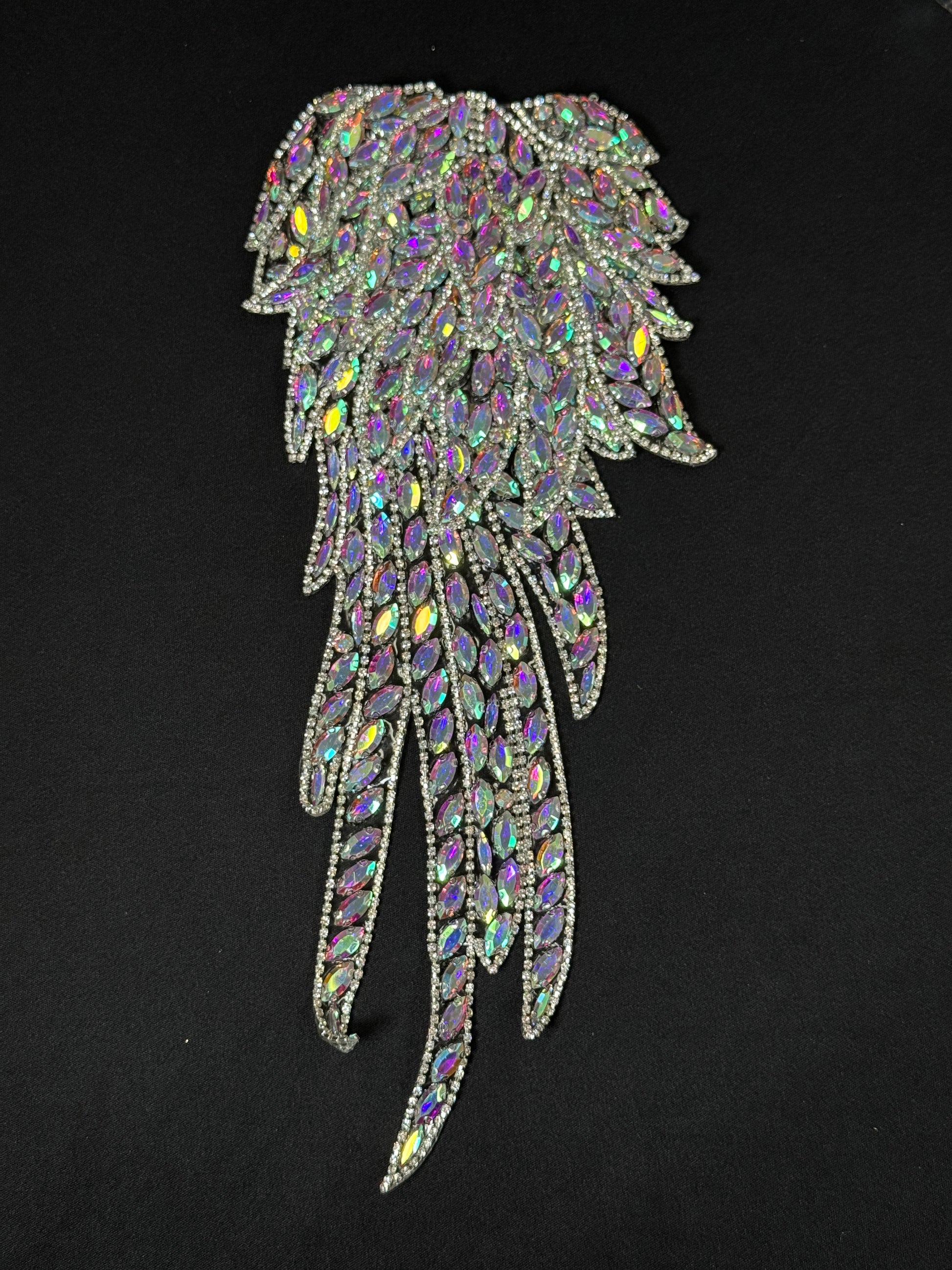Individually sold, this Wing Rhinestone applique is soft and flexible, perfect for adding 3D effects to shoulder pieces. 14in x 6.5 in